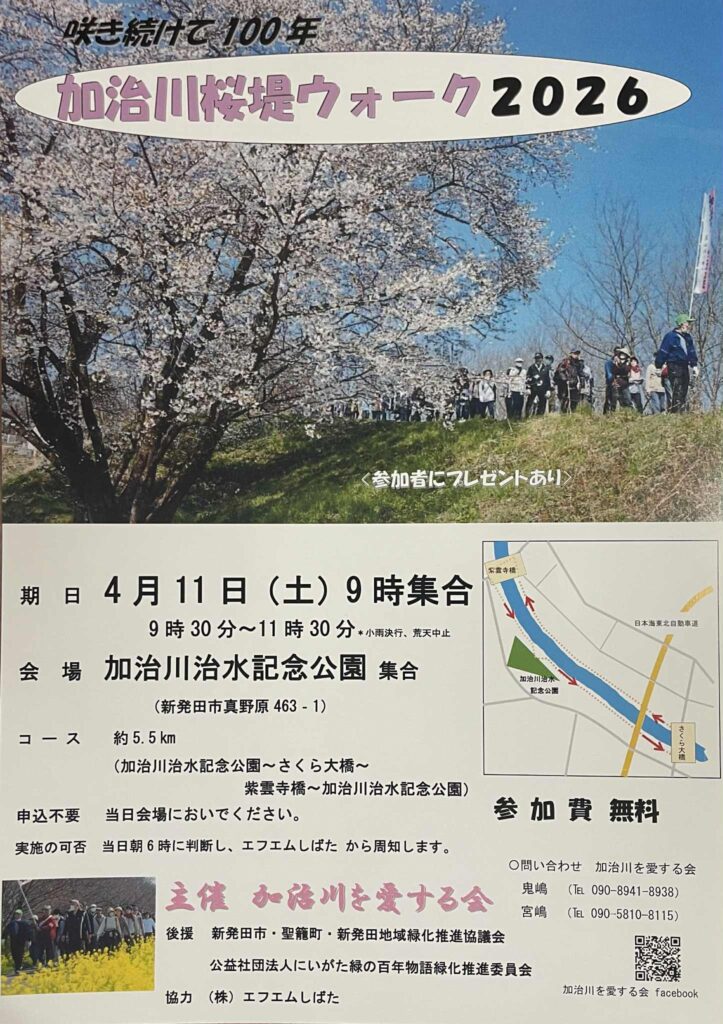 2026年4月11日(土)に加治川桜堤ウォーク2026を次のとおり開催します。